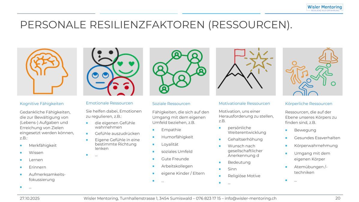 Mein Resilienztraining unterstützt Ihre Mitarbeitenden und Führungskräfte dabei, Stress frühzeitig zu erkennen, gesund damit umzugehen und ihre psychische Widerstandskraft gezielt zu stärken. Auf Basis aktueller Erkenntnisse aus Stressforschung, Positiver Psychologie und Neurobiologie vermittle ich praxisnahe Methoden, die sich direkt in den Arbeitsalltag und in die Freizeit integrieren lassen.